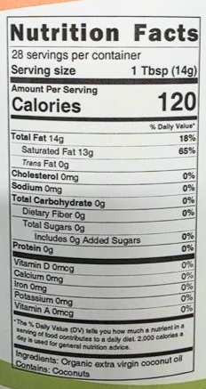 Ingredients: Organic Virgin Coconut Oil. Certified Kosher and Organic.